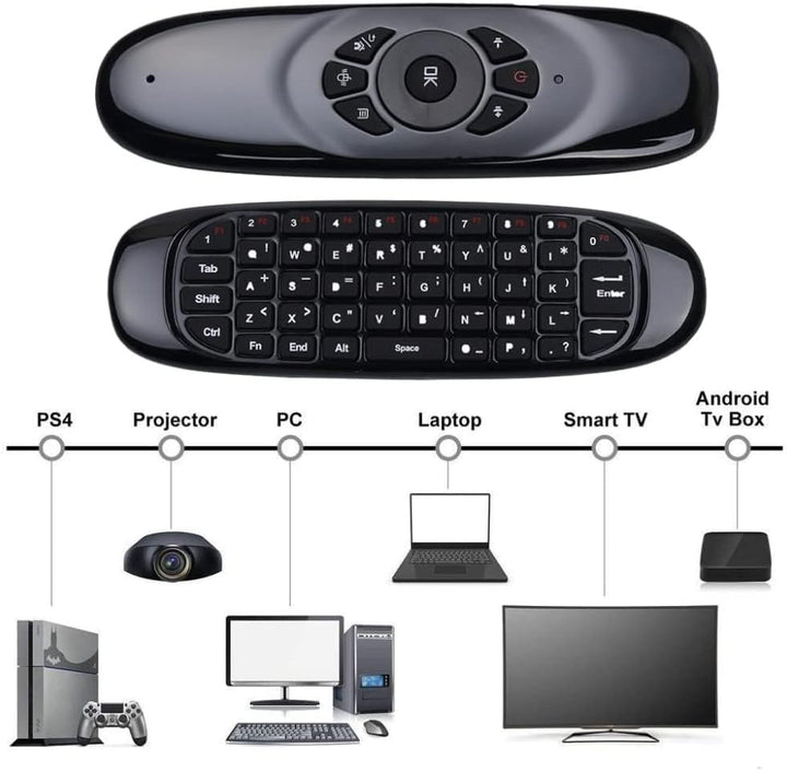 Enhance your computing and entertainment experience with the versatile Wireless Keyboard featuring Remote Controller and Air Mouse functionality. Designed to cater to various needs, it combines convenience with advanced technology for seamless interaction.